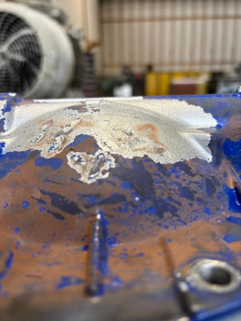 Tijdens onderhouds- en revisiewerkzaamheden aan een membraanpomp bij een betonfabriek is aanzienlijke schade geconstateerd. Bij inspectie bleek dat de schade